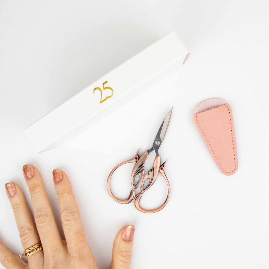 This was the first advent box I have ever signed up for and I truly did not know what to expect or if I would be disappointed. I squealed with delight on day 1 when I got the bag. And on Day 2 through Day 25. I was so sure that I wouldn’t get a pair of wonderful scissors so image how excited I was. Everything was wonderful and I’m definitely planning on the box this year, By the way, I needed a box to hold my embroidery project and was excited with the lovely box I received for my gifts. I have to confess I ordered another box from a knit shop and was so disappointed with then items they chose in the plain cardboard mailing box and and little envelopes to hold their items. So I appreciated your wonderful box all the more! Thank you!