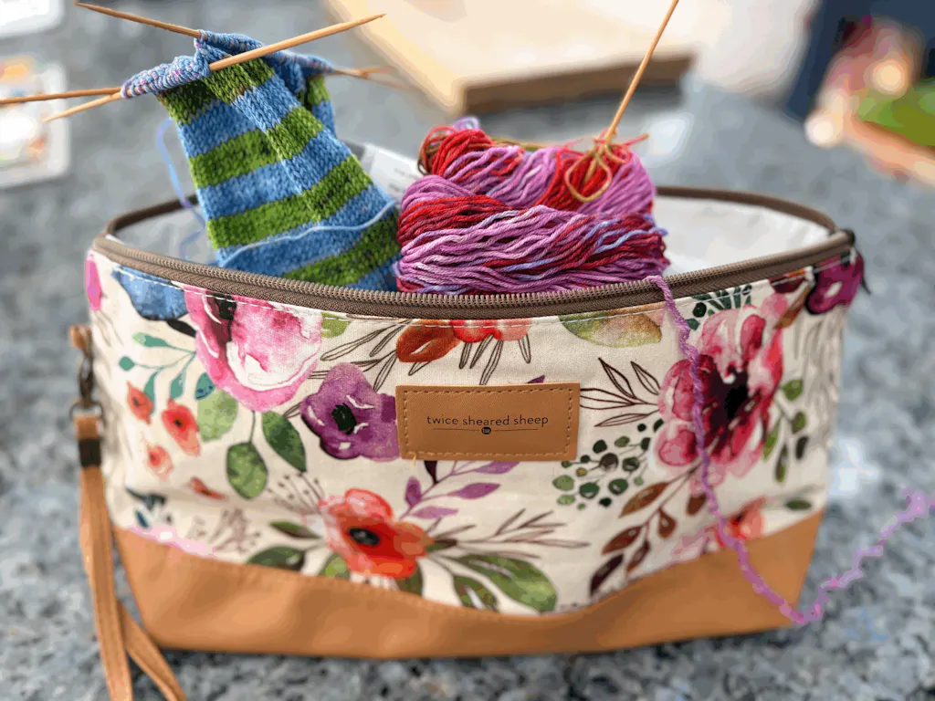 Spring Floral Trinity Bag – Medium Zippered Knitting Project Bag